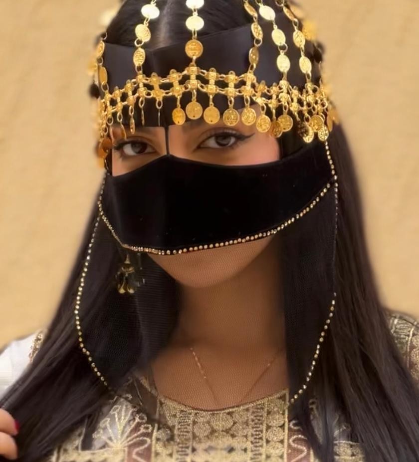 برقع تراثي فخم بفصوص كريستال وطبقة مخمل