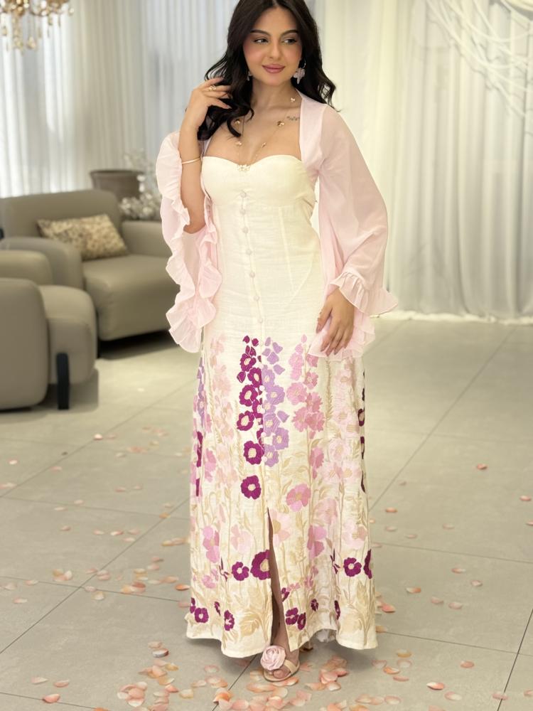 فستان انثوي راقي من افخم اقمشة اللنن والشيفون