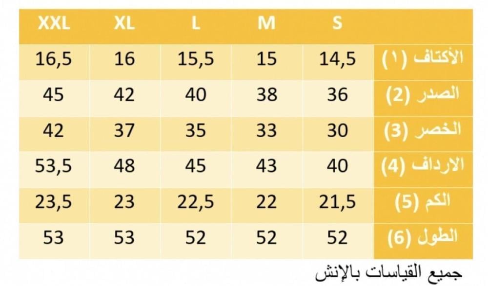 الرجاء اختيار المقاس المناسب من جدول المقاسات المرفق مع الصور