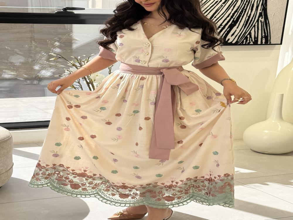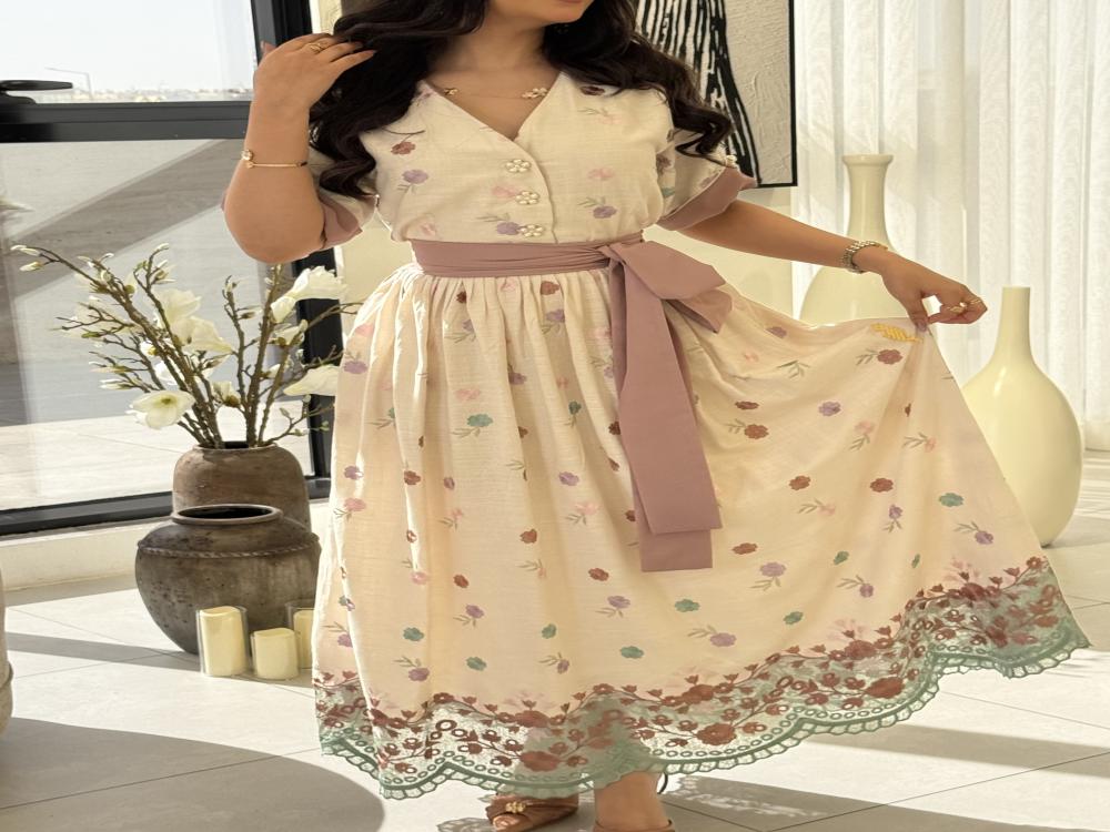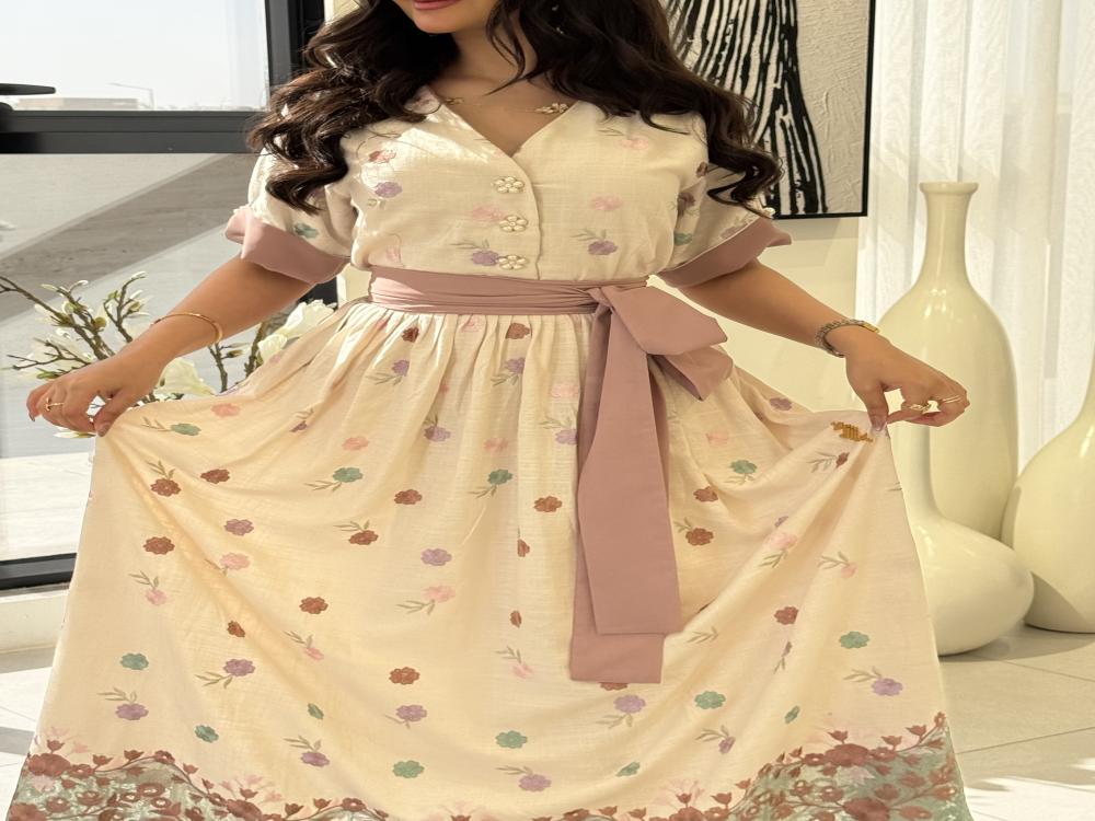 فستان انثوي راقي من افخم اقمشة اللنن والشيفون
